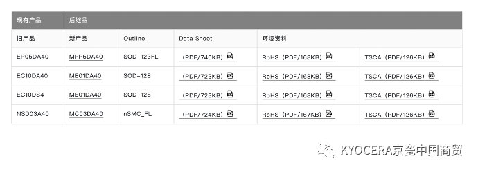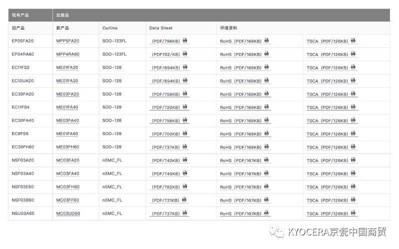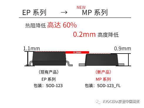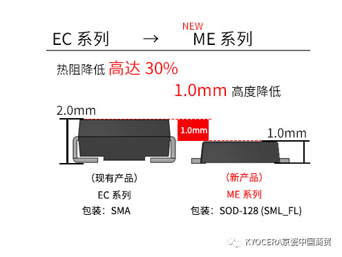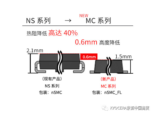 現在,京瓷更新了現有分立式半導體SMD封裝產(chǎn)品的EP/EC/NS系列,對應的新系列名為MP/ME/MC系列。